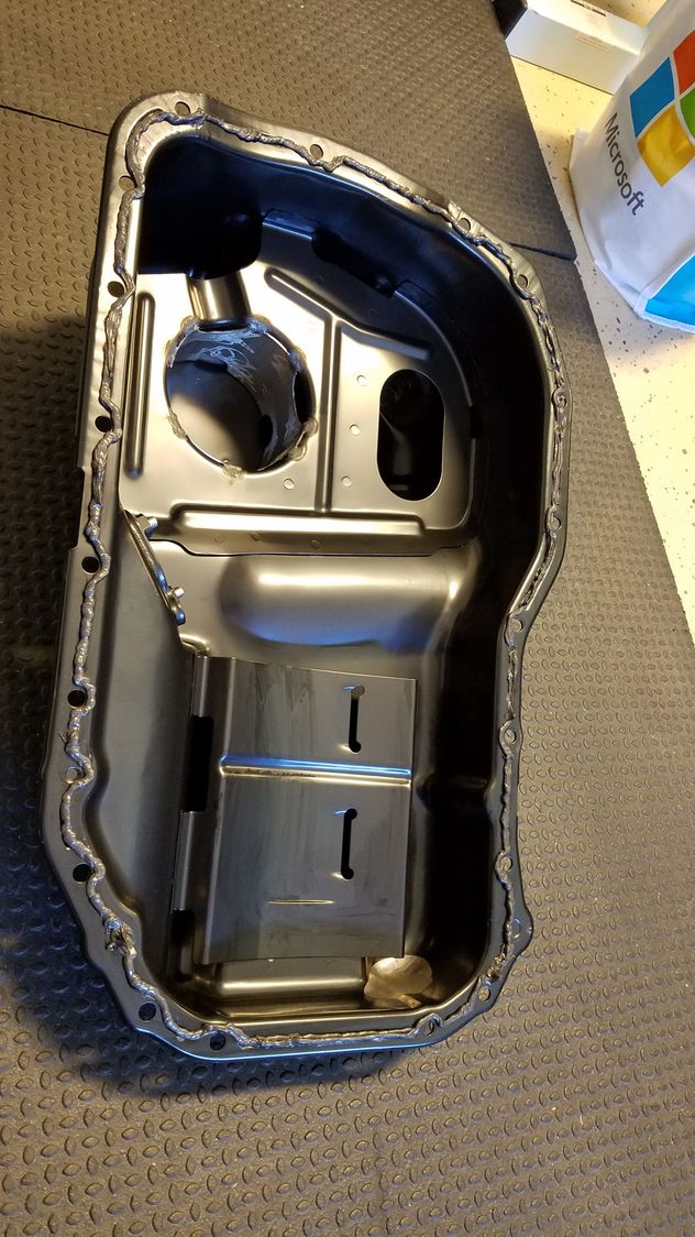 Laying down a bead of Black RTV to seal the buschur baffled oil pan to the block.