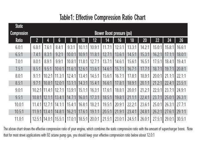 Based upon this chart you would need to lower your ratio A LOT. to do so would require shorter rods, and dished pistons.