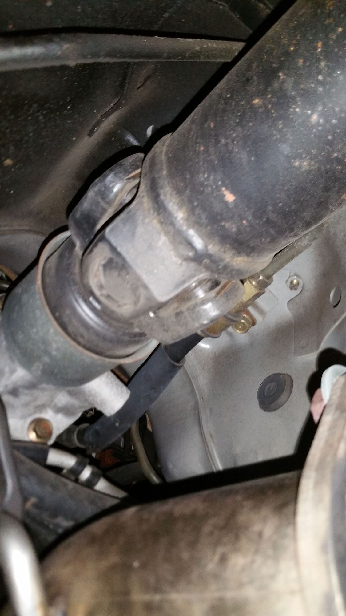 Facing front of car from under cat.