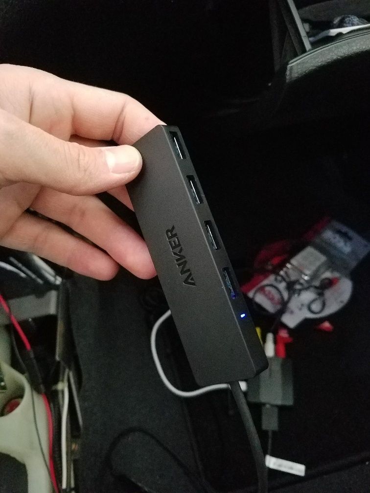 4 port low profile USB hub. I used 1 port for the UEGO Wideband, 1 for Tactrix, 1 to power the video converter and ran a usb extension up to the glove box for thumb drives and other external items.