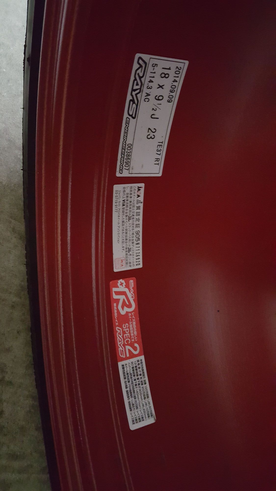 Volk Racing 18"x9.5" +23 TE37 RT in Burning Red with 265/35 Bridgestone RE-71RMore About This Picture